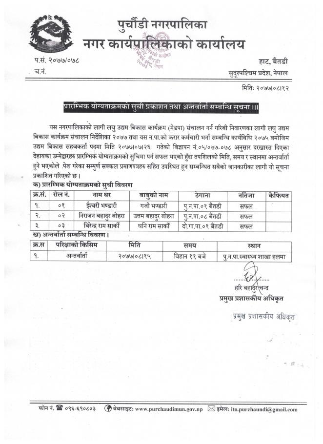 » प्रारम्भिक योग्यताक्रमको सूची प्रकाशन तथा अन्तर्वार्ता सम्बन्धि सूचना ।