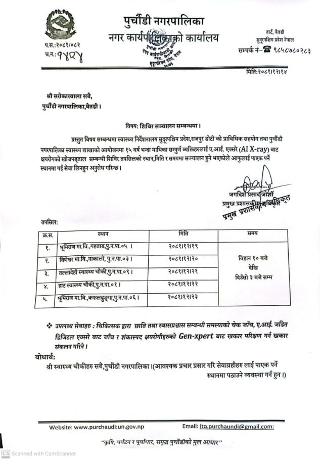 शिविर सञ्चालन सम्बन्धी सूचना।