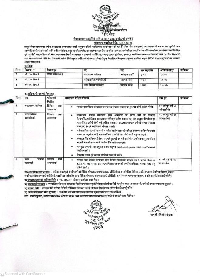 सेवा करारमा पदपूर्तिको लागि दरखास्त आह्वान गरिएको सूचना ।